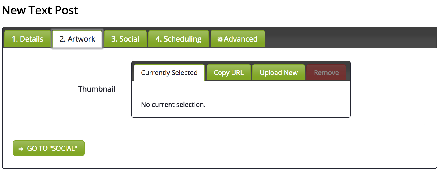 From here, it will be very similar to publishing an episode, minus uploading the media file.